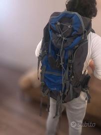Affare per il trekking e l’escursionismo: zaino 60 litri DF Mountain, modello Baltoro, blu e grigio.