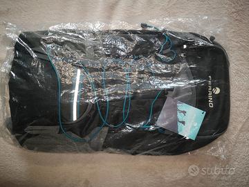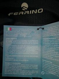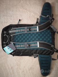Zaino Ferrino 30 litri, ideale per escursione in montagna. Schienale arenato per facilitare la dispersione del sudore. Dotato di anello elastico per trasporto bastoni. 10 tasche disponibili e cover anti pioggia. Cinghie ergonomiche progettate per la corretta distribuzione dei carichi. Nuovo, mai usato.