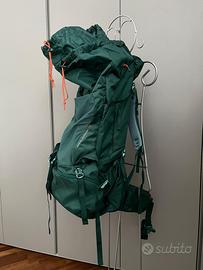 Appalachian è sinonimo di robustezza ed affidabilità che unito alle sue molteplici tasche e accessi lo rende ideale per escursioni di più giorni o come bagaglio per i viaggi avventura "zaino in spalla".Caratteristiche Tessuti: Jacquard Weave 500D | Supertex Dorso: Dorso ergonomico con sistema di regolazione "Back Ergo Adjustment", che avviene mediante il posizionamento della slitta spallacci su un sistema a nastri rinforzato internamente con un bastino in alluminio automodellante, per una migliore distribuzione dei carichi in corrispondenza della fascia a vita. Tasche: Sul cappuccio | di sicurezza | Laterali a soffietto | Laterali inferiori | Frontale in rete | Su fascia a vita | Tasca interna per il sistema di idratazione Accessori: Due porta bastoncini | Nastri addizionali amovibili sul fondo | Nastri di compressione laterale | Accesso inferiore al corpo dello zaino con separatore interno| Copri zaino incluso | Compatibile col sistema di idratazione H2 Bag.Dettagli tecnici Peso: 2 kg Capacità: 75 l Dimensioni: 83x38x32 cm MAI USATO - VENDO PER INUTILIZZO