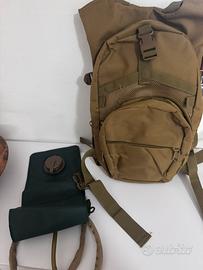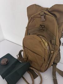 Zaino tecnico da trekking per quando andate a fare un bella camminata nel bosco… Provvisto di moltissime tasche multiuso,chiusura con cintura al pezzo e zona lombare piu sacca per acqua con tubicino per bere.
