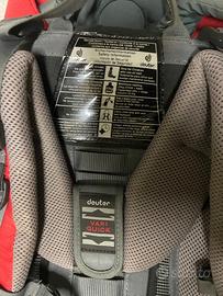 Vendo zaino da trekking DEUTERIO porta bambino con struttura rigida, colore rosso e grigio.
