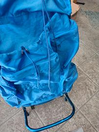 Zaino vintage da trekking ed escursioni con struttura in alluminio. Completo di alcuni accessori e viteria di ricambio. Oggetto datato e da ripulire. Potrebbero mancare delle parti. Vendo così com'è, come da foto. Non spedisco