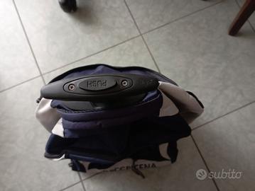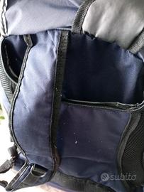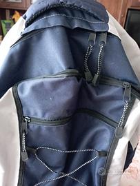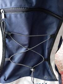 Vendo zaino trolley NUOVO mai utilizzato, colore blu e grigio multitasche dove poter riporre tanti oggetti,tessuto leggero ma anche molto resistente .Con logo della BCC Picena, adatto per viaggi, escursioni.