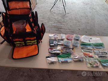 Come da titolo, vendo zaino-valigetta con attrezzatura da pesca visibile in foto. L'attrezzatura è specifica per pescare luccio e black bass.