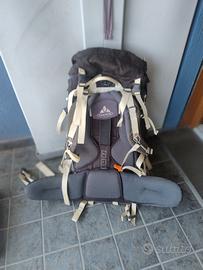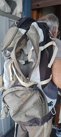 Zaino di grande capacità usato solo una volta. Ha due tasche laterali e due accessi al corpo centrale da esterno. Taschine sul fascione e cappelliera asportabile da usare come beauty con specchietto incluso. Ha la separazione fra parte alta e parte inferiore ed è completo di coprizaino.