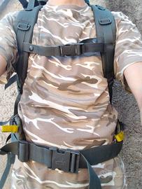 Zaino Vaude 60+10, anni '90, usato ma ancora in buone condizioni con tutte le chiusure e zip funzionanti. Due comparti separati da una zip interna. Qualche zona discolorata dovuto all' età e usura. Prodotto di ottima fattura.