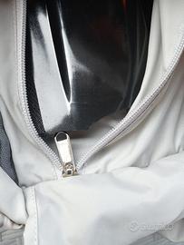 Ha subito un piccolo danneggiamento nel trasporto aereo: come si vede da una delle immagini, il pannello di materiale plastico inserito come supporto rigido allo schienale presenta una piccola scheggiatura (circa 2 cm nella parte superiore, non ne compromette assolutamente la funzionalità).