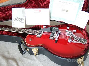 Vendo o valuto permute SOLO con Fender Telecaster e Jazzmaster Music Man MM90 Rickenbacker 330 Gibson Sg con pickup 57 classic 1957 Gretsch Jet Firebird 6131 riedizione 2008 in condizioni pari al nuovo. Realizzata nel 125° anniversario Gretsch è rara nel colore Oriental red, in questa annata. Ha tutte le specifiche delle Gretsch Duo Jet prodotte nel periodo tra il 1957 e il 1958: quindi, è come la Gretsch di Bo Didley con l'aggiunta del Bigsby, e come la Gretsch di George Harrison con le uniche differenze di colore e ponte: . body single cut nero con camere tonali e top rosso orientale . segnatasti hump block . pickup Gretsch Tds DynaSonic USA . tremolo Bigsby a prova di bomb dive (tiene perfettamente l'accordatura) . hardware cromato e ponte Syncrosonic Melita con perfetta intonazione delle ottave La qualità è pari a un'attuale Vintage select. Solo consegna diretta (no spedizioni) anche ad Affi oppure a Bologna o Mestre.