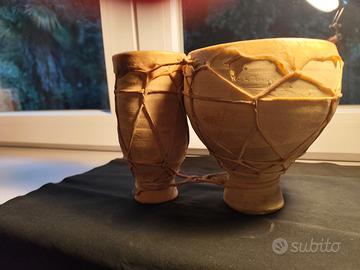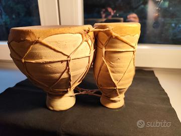 1978. doppio Bongo in terracotta originale del Marocco in buono stato, suona perfettamente, pelle tesa e idratata, vero pezzo originale