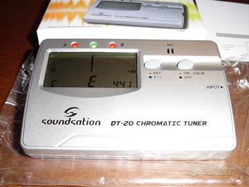 UN ACCORDATORE NUOVO(MAI USATO CAUSA NON HO PIù STRUMENTI MUSICALI)),COMPLETO,CONFEZIONATO,MAI USATO Ho Solo Messo 2 Mie Batterie e Provato Ad Accenderlo Per Far Vedere Il Funzionamento In Foto(usando delle altre batterie mie non quelle nuove e sigillate comprese nella confezione),DI PICCOLE DIMENSIONI E LEGGERO,CON DISPLAY LCD,Per:Chitarre e Basso e Violini,Marca SOUNDSATION,Modello DT-20 CHROMATIC TUNER,Colore:Argento,Ha 2 Modalità Di Funzionamento: Automatico e Manuale,Ingresso Jack e Un Microfono Incorporato Per Poter Accordare Sia Strumenti Elettrici Che Acustici,VA A BATTERIE(con 2 Pile NUOVE,SIGILLATE COMPRESE,vedi foto),Con:Scatola,Sacchetto Trasparente,Istruzioni,Accordatore,2 Batterie SIGILLATE TUTTO NUOVO E ORIGINALE E PERFETTO,SENZA DIFETTI,PERFETTAMENTE FUNZIONANTE,Mai Usato Solo Acceso Per Far Le Foto,è POSSIBILE LA DIMOSTRAZIONE DEL PERFETTO FUNZIONAMENTO a Erbusco(BS)PORTANDO VOI 1 o più STRUMENTO/I MUSICALE/I (IO NON HO PIù NESSUNO STRUMENTO MUSICALE).