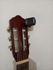 Kit 2 chitarre (una 3/4 per bambini) entrambe con custodia morbida, leggio pieghevole con custodia, pedale poggiapiedi pieghevole, accordatore elettronico.