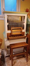 -divisibile in 2 parti. parte superiore alla tastiera, misure 90x35, altezza 110. parte inferiore tavolino con mantice, motore, pedale, misure 90x35,altezza 75.