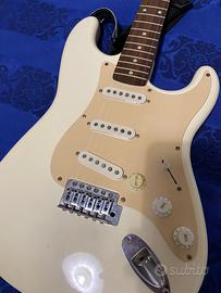 fender squier bullet strat in colorazione olympic white acquista nel 2008 o 2009, precisamente non ricordo ma sicuramente il seriale riporta a quegli anni lì. un’ottima annata per queste chitarre a detta del web e posso confermare che la qualità di costruzione è davvero ottima. mancano le corde perché prima di conservarla le tagliai ma ho deciso di metterla in vendita. elettronica tutta funzionante, in caso posso fare tutte le prove che vi occorrono. qualche sbeccatura invisibile ma aggiunge quel fascino vissuto. ottima chitarra