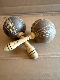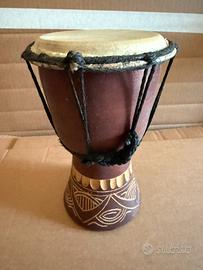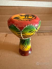 Vendo i seguenti strumenti musicali provenienti da diversi paesi del mondo, per un totale di 5 articoli : 1) Djembe africano in legno e pelle Diametro 15 cm. - altezza 20 cm. 2) Djembe africano in legno e pelle Diametro 13 cm. - altezza 20 cm. 3) Djembe tunisino in ceramica e pelle Diametro 12 cm. - altezza 19 cm. 4) Flauto di pan peruviano in legno 13 canne altezze miste - la più alta 60 cm. 5) Maracas cubane in legno e cocco Diametro 7,5 cm. - altezza 16 cm. Se sei appassionato/a di musica e viaggi non puoi farti scappare questo lotto.
