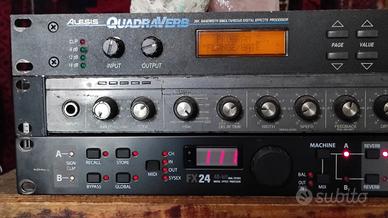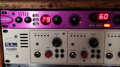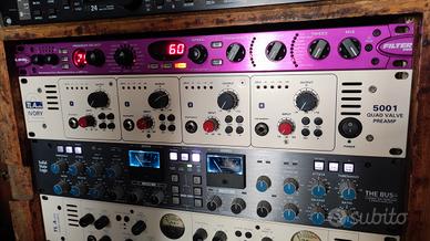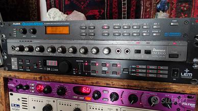 Vendo per cambio setup un fantastico bundle di 5 unità rack, perfetto per aggiungere calore analogico, effetti creativi e preamplificazione valvolare di qualità al tuo studio. Un set versatile che spazia dal calore britannico delle valvole ai delay lo-fi giapponesi degli anni '80. Il pacchetto include: 1. TL Audio 5001 Ivory 2 (Quad Valve Preamp): Preamp valvolare a 4 canali "Made in UK". Perfetto per scaldare batterie, voci e sintetizzatori. Suono britannico autentico. 2. Line 6 Filter Pro (Modeler): Un pezzo raro e ricercatissimo della serie "Purple" Pro. Filtri dinamici, sweep e modulazioni uniche, non più in produzione. Un "must" per sound design e synth. 3. Ibanez DM1000 (Digital Delay): Un classico del 1983. Delay a 12-bit dal carattere caldo e pastoso, molto diverso dai moderni plugin. Eccellente per chitarre e dub-mixing. 4. LEM FX24 (Digital Multi-Effects): Un gioiello del design italiano (Generalmusic). Doppio motore a 24-bit per riverberi e delay cristallini. Un pezzo di storia locale con prestazioni moderne. 5. Alesis Quadraverb (Digital Effects Processor): Il re degli anni '90 per riverberi ambient e texture eteree. Un classico intramontabile che non può mancare in un setup hardware. Condizioni: Tutte le unità sono state testate e sono perfettamente funzionanti. Esteticamente in ottime condizioni (normali segni di montaggio a rack). Alimentatori inclusi dove previsto. (Ottima opportunità per chi vuole allestire un setup outboard completo con un unico acquisto) Consegna: Ritiro a mano caldamente consigliato, data la natura del bundle. Possibilità di spedizione tracciata su richiesta.