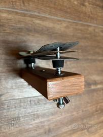 Vendo 808 Crasher Stack Mew Drum Percussion. Ha il suono di un HiHat elettronico ma senza rinunciare alle dinamiche, al feeling ed al calore di uno strumento acustico. Ideale come secondo hihat con carattere “techno”. L’ingombro è minimo: circa 150x50x50. Il raccordo filettato è compatibile con tutte le aste pro e semi pro da 8mm e può essere montato anche su un piatto al posto della farfalla. Ha un buon volume sonoro (non passa inosservato…)