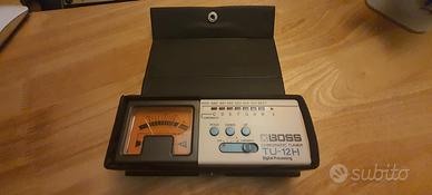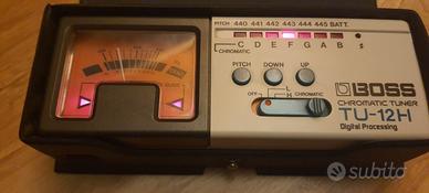 Accordatore Boss TH-12H / Reference Pitch: A4 = 440 to 445Hz (1Hz step) - Tuning Range: C1 (32.70 Hz) to B6 (1975.53 Hz) - Tuning Accuracy: +/-1 cent - Connectors: Input, Output, AC Adaptor