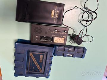 Accordatore Korg At12 completo di caricatore, funziona anche a batterie, ingressi jack per chitarra e basso. Molto preciso e affidabile. Uscita cuffie e suono d'uscita.