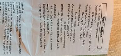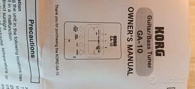 Accordatore per chitarre e basso Korg GA 10. Condizioni perfette completo di batteria e istruzioni. Solo la scatola di cartone originale è un po' rovinata.