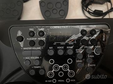 Drum Kit da TavoloALESIS COMPACTKIT 7Usato garantito, in ottime condizioni. Disponibile per prova in negozio. Percussione elettronica entry level 7 Pad sensibili alla dinamica Include due pedali per cassa e hi-hat Altoparlanti integrati per ascolto immediato 265 suoni assegnabili ai pad 45 drum kit preimpostati, 5 preset utente Funzione di registrazione Funzione Hand Percussion: richiama kit suonabili con le mani Metronomo programmabile 100 brani riproducibili con o senza sezione ritmica Porta USB per l'invio dei dati MIDI generati da Pad e pedali Possibilità di assegnare la nota MIDI trasmissibile da ogni trigger Uscita stereo mini-jack per cuffia (disabilita altoparlante) Dimensioni: 500 x 370 x 157mm Peso: 3,3 kg