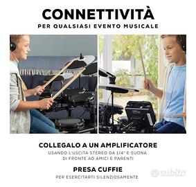 Mini kit collegabile per qualsiasi evento musicale - Collegalo a un amplificatore usando l'uscita stereo da 1/4" e suona di fronte ad amici e parenti; usa la cuffia per esercitarti silenziosamente