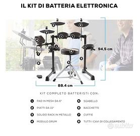 Il kit di batteria completo per bambini - Kit per bambini con pad elettronici in pelli mesh da 6", tre piatti da 10", solido rack in metallo, modulo drum, sgabello, bacchette, cuffie e cavi