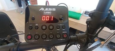 Batteria Alesis Turbo Mesh Kit Completa, Usata - Vendo per passaggio a categoria superiore 🥁 ❤️ Caratteristiche: Batteria elettronica entry level con pelli mesh Basso rumore ambientale, naturalezza nella risposta dei pad Tutto quello che ti occorre: set da 7 pezzi Pad rullante da 8" 3x Pad Tom da 8" 3x Pad piatto da 10" (hi-hat, crash e ride) Pedale cassa e pedale hi-hat in dotazione Rack in alluminio, robusto e stabile Modulo sonoro Turbo Electronic 10x Kit classici e moderni pronti all'uso 120 suoni, 30 basi, metronomo Allenatore virtuale integrato Ingresso mini-jack per collegamento a CD/MP3 player Uscite audio line e cuffia Porta USB/MIDI per il controllo di strumenti software Cavi di collegamento, bacchette, chiavi per montaggio inclusi Alimentatore incluso Dimensioni del modulo: 147 x 183 x 112mm