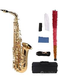 Alto Saxophone Ottone Placcato Oro E Piatto Sax 802 Chiave Tipo Strumento Di Woodwind Con Pulizia Spazzola Panno Guanti Cork Grease Cinturino Imbottito Custodia + Ance di scorta.