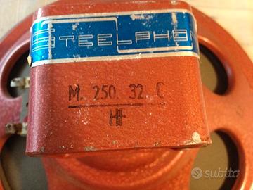 Altoparlanti larga banda biconici per strumenti musicali (chitarra elettrica, voce etc.) Electronic Melody M. 250. 32. C. HF, magnete in ALNICO, con bollino adesivo Steelphon, risalenti agli anni '60.