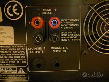 Vendo suddetto finale degli anni 90, una belva, 2 canali da 900watt l'uno a 2ohm, oppure in bridge a 1500w a 4ohm.