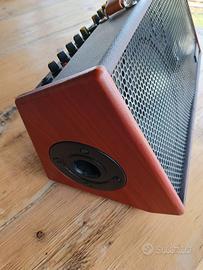 Audio design pro Ottimo anche come cassa bluetooth, finitura di pregio. Di seguito le caratteristiche: Portatile a batteria agli Ioni di Litio (durata di funzionamento 8-10 ore). Ingresso bilanciato per chitarra acustica Ingresso sbilanciato per chitarra elettrica, tastiere o microfono Regolazione bassi, medi e alti e 6 effetti sui due ingressi principali PAD -10 dB sul livello degli ingressi Jack e combo. Ingresso mini jack stereo 3,5 mm per una sorgente esterna PC, smartphone, tablet o lettore MP3 Bluetooth per collegarsi a un computer portatile, smartphone, tablet o lettore MP3. Lettore USB per file musicali in formato MP3 e WAV. Registrazione su chiavetta USB in formato Mp3. 5 Preset di suono sul lettore USB o sulla connessione Bluetooth Possibilità di alimentare un pedale multieffetto, un mixer o uno smartphone tramite la presa USB Connessione Jack per un pedale supplementare (non fornito) per cambiare gli effetti. Dimensioni: 47 x 25 x 23 cm Peso: 6.25 kg