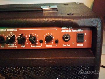 Amplificatore per chitarra acustica Harley Benton HB 20 perfetto, praticamente mai usato e tenuto in maniera maniacale, vendo per cambio progetto. Potenza 20 watt nominali, rivestimento in pelle sintetica morbida, due vie (woofer da 20 cm e tweeter a tromba). Cavo alimentazione staccabile IEC. Effetti: chorus e riverbero regolabili indipendentemente. Controlli bassi e acuti, regolazione parametrica delle frequenze medie. Due canali indipendenti: uno per chitarra e l'altro per microfono (ingresso bilanciato XLR) Uscita linea out (che funge anche da uscita cuffie), ingresso RCA per un lettore multimediale o smartphone e suonare su basi. Stand by automatico salva corrente Griglia in metallo. Ideale per suonare a casa ma anche per sessioni live in piccoli locali/concerti perché si sente molto forte. Suona divinamente con le acustiche, ma è possibile utilizzare anche una chitarra elettrica (ovviamente per suoni clean). Qualsiasi prova. In omaggio rotelline girevoli per la base. Solo contatto WhatsApp al 348.4631989 Non spedisco, ma solo consegna a mano dopo visione e prova.