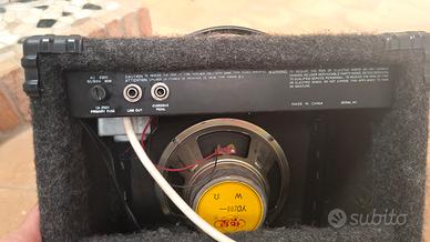 amplificatore chitarra elettrica con overdrive, regolazione volume, overdrive, master, alti, medi, bassi. Potenza 25W.
