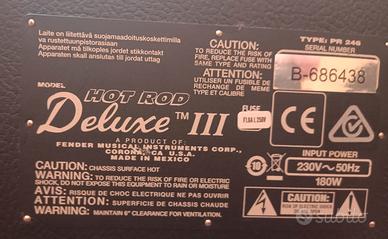 Vendo, Zona Novara (Piemonte), amplificatore FENDER VALVOLARE 40 W Hot Rod Deluxe III con suo pedale per cambio canali (Tre canali).