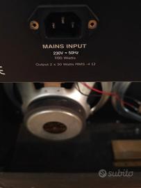 Causa inutilizzo vendo amplificatore combo ibrido per chitarra dotato di preamplificatore Valvestate e chorus stereo perfettamente funzionante. Ottime condizioni qualche segno di utilizzo. Utilizzato poco. Completo di pedale originale doppio controllo per passaggio da canale distorto a pulito e attivazione effetto chorus. Specifiche: Serie Valvestate. Potenza: 2 x 30 W RMS stereo 60 W totali Altoparlanti: 2 Celestion Goldback da 12 pollici. 2 canali Uscite jack stereo DI. Uscita cuffie. Dimensioni: 66 x 50 x 26 [cm]. Peso: 22,00 [kg] Il bene viene venduto con la formula visto e piaciuto.