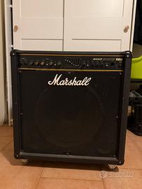 Amplificatore Combo portatile per basso elettrico Marshall da 150 Watt.. suono pulito e rotondo. Ha le rotelle monodirezionali. Gia controllato e revisionato da negozio di fiducia. Vendo per passaggio a set piu compatto