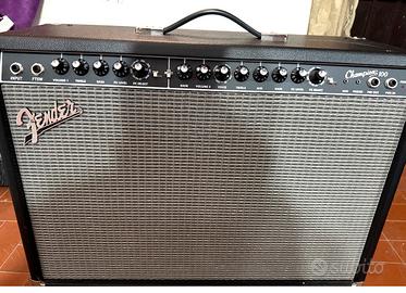 Caratteristiche Tecniche Potenza in uscita: 100 Watt Altoparlanti: 2 x 12 pollici Fender Special Design Canali: 2 (Blackface Clean e Amp Voice selezionabile) Effetti integrati: Riverbero, Delay, Chorus, Tremolo, Vibratone e altri Controlli canali: Volume, Treble, Bass (Ch 1); Gain, Volume, Voice, Treble, Mid, Bass, FX Level, FX Select (Ch 2) Ingressi: 1 x Jack 1/4 pollice Instrument, 1 x Aux-in 1/8 pollice Uscite: 1 x Cuffie 1/8 pollice, 1 x Porta USB Dimensioni: 660 x 260 x 480 mm Peso: 18,2 Kg Interruttore a pedale escluso