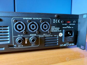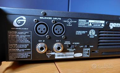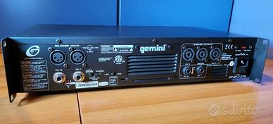 Vendo finale di potenza stereo/mono Gemini GPA-2000, condizione pari al nuovo, usato 2 volte per feste private. Completo di scatola originale e cavo di alimentazione. Caratteristiche tecniche: attenuatori d''ingresso con led meters led di protezione picco ingressi bilanciati JACK 6.3 mm e XLR uscite per una coppia di casse con JACK 6.3 mm o Speakon switch mono a ponte/mono in parallelo/stereo rack mount 19" altezza 2U potenza su 8 Ohms per canale: 85 W rms e 17O W di picco potenza su 4 Ohms per canale: 11O W rms e 22O W di picco potenza su 8 Ohms in mono a ponte: 22O W rms e 44O W di picco altezza (in mm) 89 larghezza (in mm) 483 profondità (in mm) 273 peso (in kg) 8,1 N.B. Il finale ha la ventola di raffreddamento sempre in funzione, quindi c'è sempre un ronzio di sottofondo, adatto per feste ma non per ambienti silenziosi.