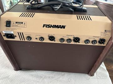 Amplificatore per strumenti acustici Fishman Loudbox Artist Bluetooth. È progettato per fornire un suono cristallino sia per la chitarra acustica che per la voce in un formato compatto e portatile. Caratteristiche Principali Potenza: L'amplificatore eroga 120 watt di potenza bi-amplificata (woofer da 8" e tweeter da 1"). Connettività: Dispone di connettività Bluetooth 4.0 per lo streaming audio senza fili di basi musicali o accompagnamenti. Canali: Offre due canali dedicati (strumento e microfono) che accettano ingressi jack da 1/4" o XLR. Controlli: Ogni canale include un equalizzatore a 3 bande, controlli anti-feedback (filtro notch e switch di fase) ed effetti digitali integrati (reverb, chorus, flanger, delay). Uscite: Include uscite DI XLR bilanciate per ciascun canale e per il mix principale, permettendo un facile collegamento a un sistema PA o a un'interfaccia di registrazione. Alimentazione Phantom: Fornisce alimentazione phantom a 24V per microfoni a condensatore. Questo amplificatore è una scelta popolare per i musicisti acustici che cercano un combo versatile e potente per esibizioni dal vivo in locali di piccole e medie dimensioni o per l'uso in studio e a casa.