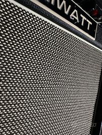 Hiwatt T20, amplificatore valvolare con possibilità di settaggio valvole in pentodo o triodo 20W (circa 50W transistor). È depotenziabile a 10W tramite selettore posteriore.
