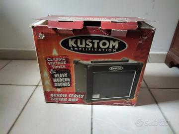 Kustom arrow 16 DFX. amplificatore a due canali 16W. ottima distorsione, la sua ciliegina sulla torta sono i vari effetti tra i quali Reverb, Echo, Chorus, auto wha, etc...in totale 16 effetti.