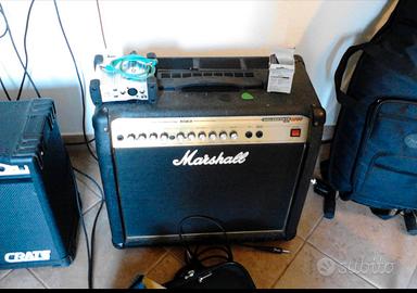 Vendo in zona Sanremo , Imperia , con sola consegna a mano , un amplificatore combo Marshall Valvestate Avt 2000 Potenza 50watt ,tutto made in England , prevalvolare con finale a transistor ,due canali separati , uno con effetti , fx send e return , con ottimo reverbero a molla , un potente cono celestion da 12 “ , una uscita foot, switch ,cuffie e uscita cd . L amplificatore é usato ma tutto ben funzionante , come da foto è visibile qualche segno sulla cornice sul frontale , che non inficia minimamente lo stupendo e caldo suono del Marshall , unico e profondo per blues e rock. , ps includo nel prezzo anche una valvola originale pre di scorta .