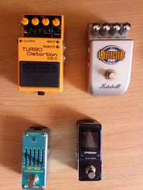 Boss DS-2 Turbo Distortion – due modalità Turbo (boost sulle medie per assoli), pedale iconico e versatile. Prezzo: 50 €