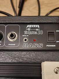 Vendo per inutilizzo amplificatore combo per basso marca Ashdown Tourbus 10 usato solo poche volte per esercitarmi in casa, funzionante. Alimentazione 220volt, 10Watt, ha l’ingresso per lo strumento con volume, bassi e medi regolabili, presa per le cuffie, ingresso per mp3, portatile, con maniglia comoda, dimensioni ridotte. Completo di imballo originale, manuale di istruzioni. Praticamente nuovo! ottimo per imparare a suonare o per riscaldamento. Fuori garanzia.