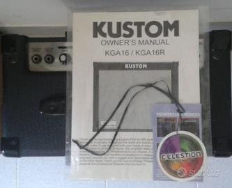 Amplificatore per chitarra elettrica Kustom KGA16R In ottime condizioni e perfettamente funzionante Combo 16 Watts RMS 2 Canali selezionabili EQ a 3 bande (Low, Mid, High) Riverbero Presa per cuffia Presa per altoparlante esterno Speaker da 8" Celestion