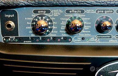 Ottimo e versatile amplificatore per chitarra a modelli fisici. Grazie alla sofisticata elettronica simula il comportamento reale degli amplificatori e degli effetti analogici: timbrica, tonalità, riverberi, vibrati, sustain, ecc. Incorpora uno dei più avanzati processori digitali (nota del produttore). Indicato per esecuzioni in studio e dal vivo. Collegabile per utilizzo con cuffia e per registrazioni. NOTA: usato una sola volta, è praticamente nuovo. Vendo con corredo di fodero in panno antipolvere e col suo dettagliato manuale di istruzioni, per sfruttare al massimo tutte le prestazioni. Dimensioni: cm. 43x38x23