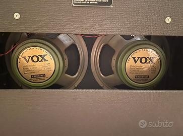 Vendo fantastico amplificatore per chitarra VOX AC 30 / 6 TB Top Boost del 1996 made in England ( non made in China ) 30 Watts Rms in classe A con 2 speakers Celestion Greenback G12 M, tutto originale in perfette condizioni elettroniche e funzionali. Amplificatore dal suono potente e pulito, tipicamente british, niente a che vedere con gli attuali Vox costruiti in Cina. E' stato usato poco e solo nel mio studio di casa ed è in ottime condizioni estetiche come si può vedere dalle foto. Con sua cover antipolvere imbottita e footswitch. Devo purtroppo venderlo per motivi di spazio.