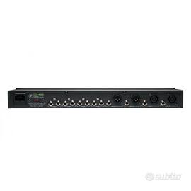 AMPLIFICATORE PER CUFFIE 4 CANALI MACHIE HM 400 Sia che tu abbia bisogno di espandere la tua capacità di monitoraggio delle cuffie del tuo home studio o di aggiungere una robusta distribuzione di cue mix, la conveniente serie HM offre la qualità del suono, l'affidabilità e la flessibilità di cui hai bisogno per espandere il tuo setup. L'ultra-compatto HM-4 offre un modo semplice ma efficace per dividere un singolo segnale stereo in quattro paia di cuffie. Perfetto per dividere rapidamente un mix cuffie in studio o addirittura affollarsi attorno a un tablet per guardare un film a casa. I due modelli da 19" montabili a rack, HM-400 e HM-800, offrono una distribuzione delle cuffie flessibile e robusta per studi, spazi per la pratica e altro ancora. Caratteristiche •Ingressi stereo L/R principali più uscite stereo L/R •Meter LED a 7 segmenti per canale più main •3 Uscite cuffe per canale •Ingresso Aux su ciascun canale con controllo del bilanciamento per mixare segnale main e aux •Selettori di modalità Mute e Stereo/2-Ch •12 uscite cuffia totali •Costruito come un carro armato •Dimensioni: (A) 46 x (L) 483 x (P) 224 mm •Peso: 3,6 kg