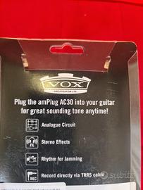 Amplug 3 AC30 è il mini amplificatore portatile per chitarra elettrica a batteria di casa Vox nella versione aggiornata, che riproduce il classico suono Top Boost dell'AC30. Presenta effetti stereo quali Tremolo, Chorus, Delay, Reverb, doppio canale, controlli di Gain, Tone e Volume, possibilità di lanciare uno dei 9 pattern ritmici, uscita cuffie e aux in.