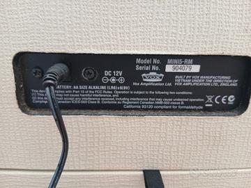 Amplificatore portatile , marca VOX Mini 5 Rhythm , per chitarra , 2 canali , 1 uscita , 1 ingresso , manca manichetta per trasporto , pubblicato in altri gruppi , non seguo fila , ritiro a Ravenna , grazie .